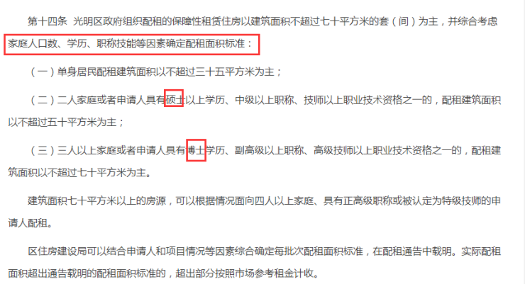 比如,光明以家庭人口数、学历、职业技能等条件确定配租房型大小,学历/职称越高可以不考虑家庭人口数申请面积更大的房型。