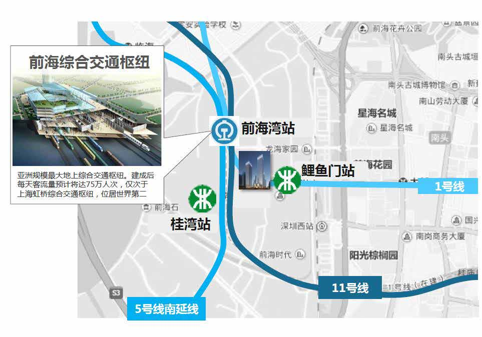 这里有亚洲较大的综合通枢纽、穗莞深城际线和港深西部快线汇聚、1/5/11号线交汇……联通深圳任一区域,快速到达大湾区乃至世界的任何一个角落。