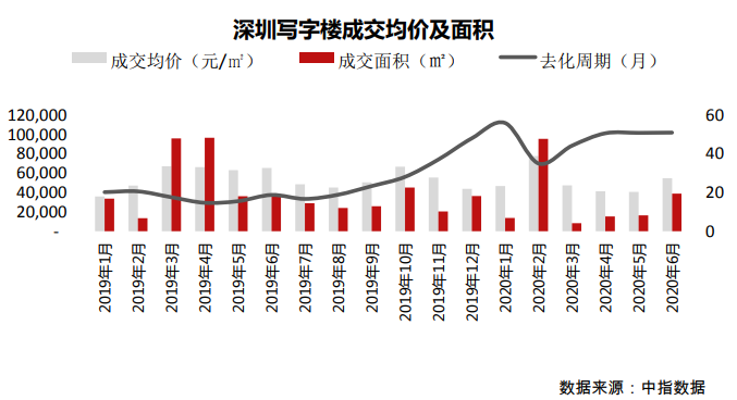 据中指院数据,2020年上半年,深圳共有5宗商业大宗物业交易,总金额在25亿元左右,其中,写字楼交易占比为60%。
