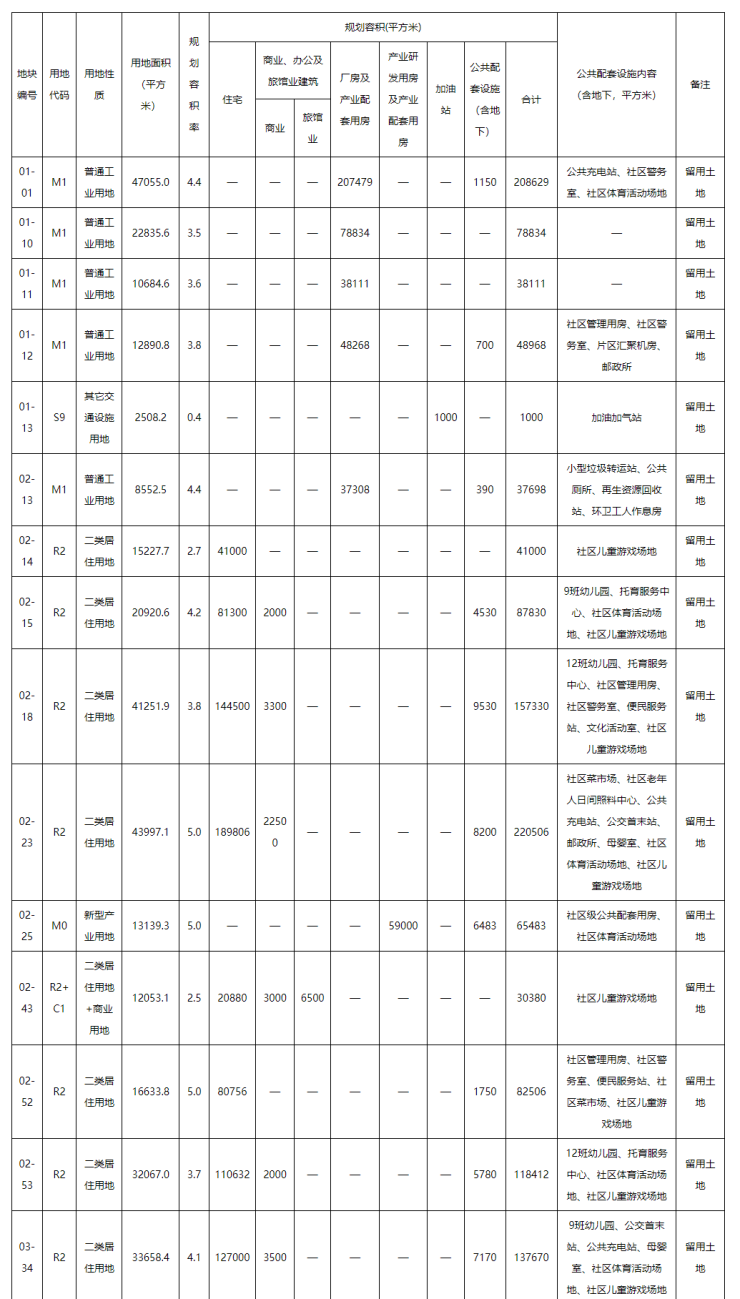 规划容积1354357㎡,规划容积率4.1,其中住宅795874㎡,商业、办公及旅馆业建筑42800㎡,厂房及产业配套用房410000㎡,产业研发用房及产业配套用房59000㎡,加油站1000㎡,公共配套设施(含地下)45683㎡。
