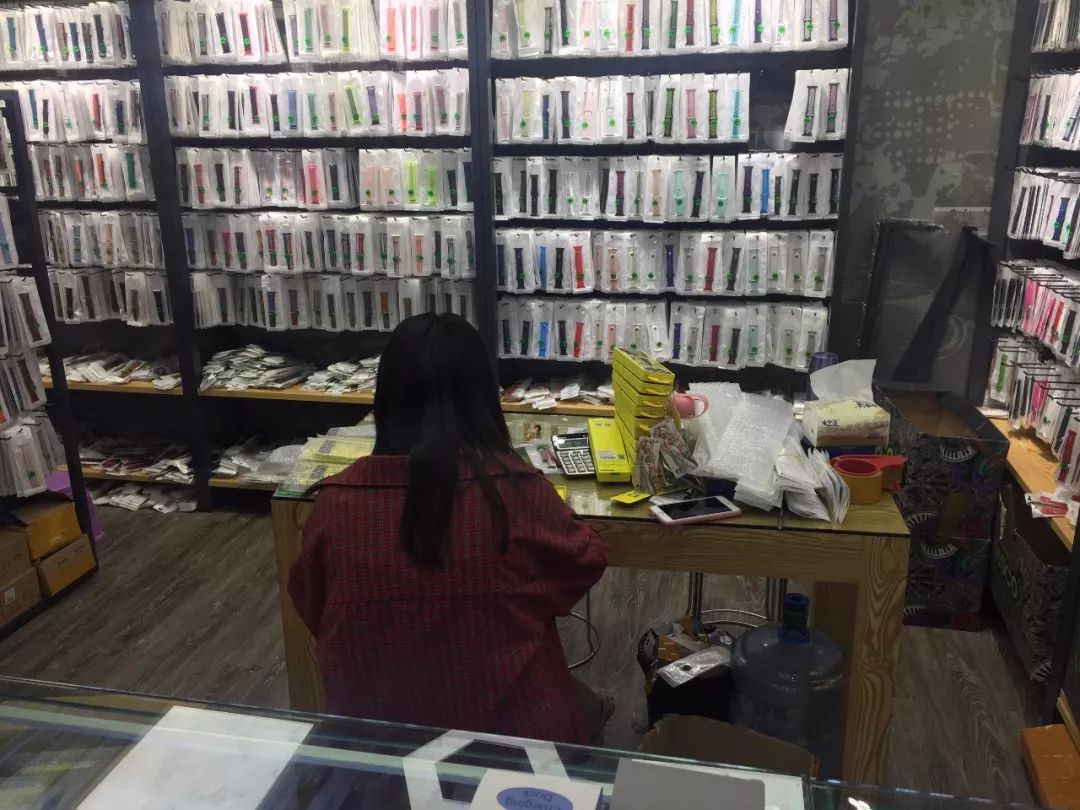 走进市场,映入眼帘的是各式各样的大小不一的小铺子,这些铺子分别卖着各种品类的电子产品,其中以手机配件和电子设备为主。每个铺子基本都专注一样配件,比如:手机壳、耳机、数据线等等。