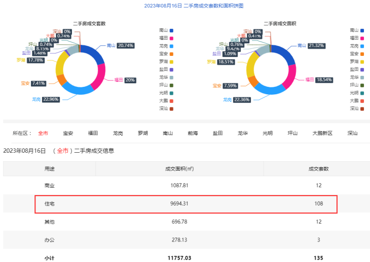 8月16日二手房住宅网签108套。宝安8套;福田22套;龙岗24套;罗湖20套;南山22套;盐田2套;龙华9套;光明0套;坪山1套;大鹏0套。