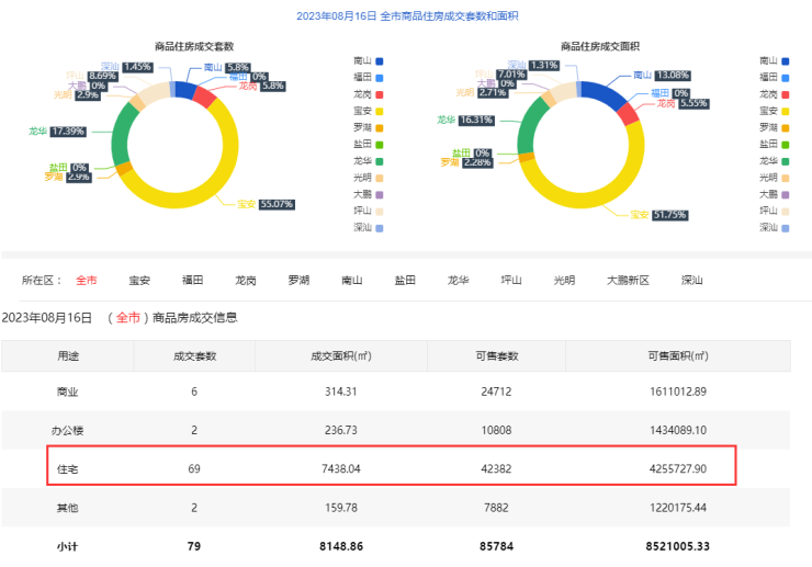 8月16日新房住宅共网签69套。宝安38套;福田0套;龙岗4套;罗湖2套;南山4套;盐田0套;龙华12套;坪山6套;光明2套;大鹏0套;深汕1套。