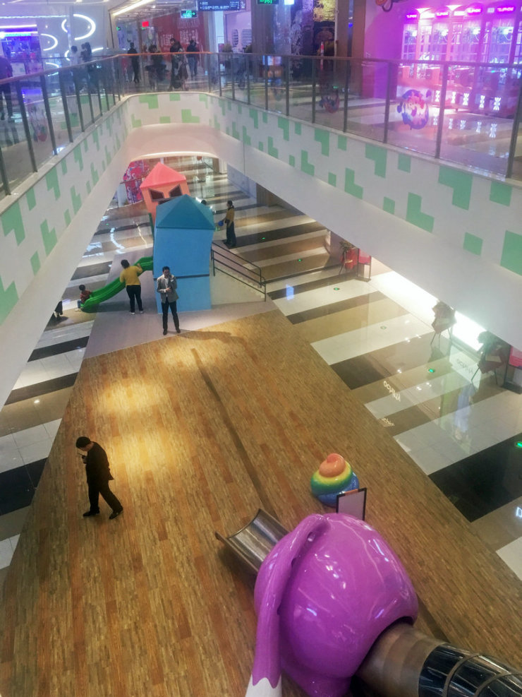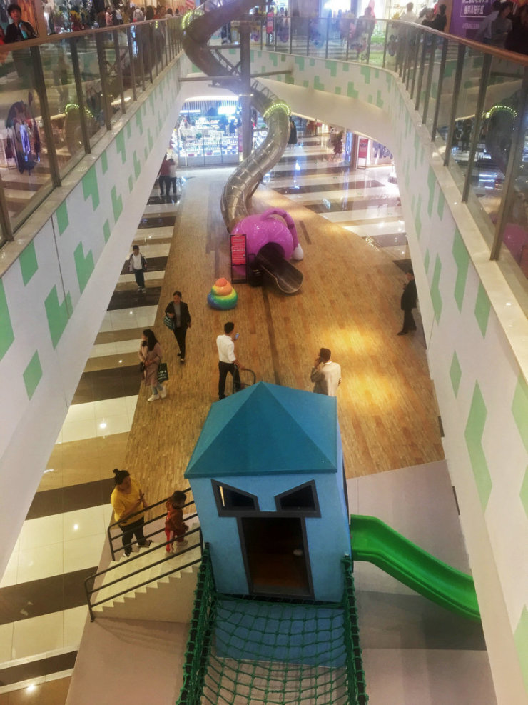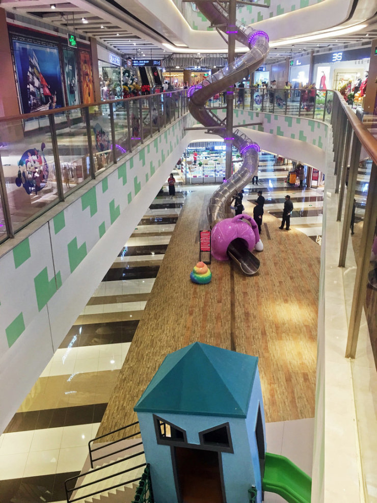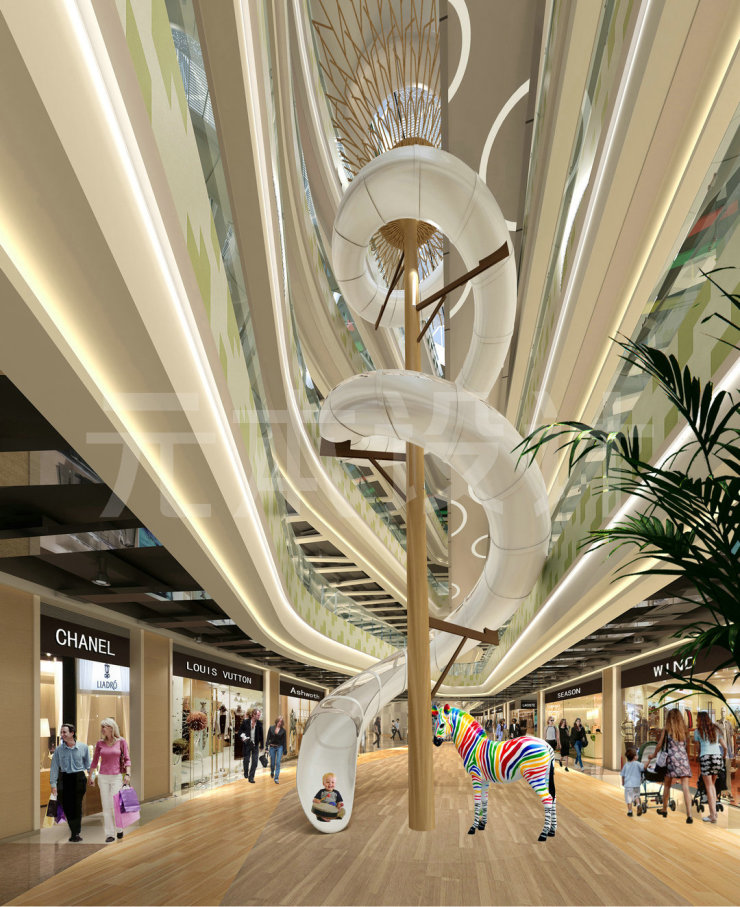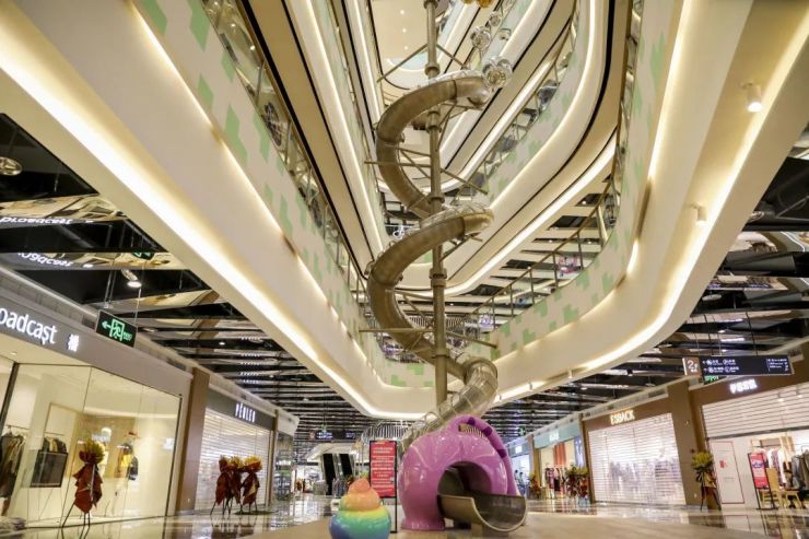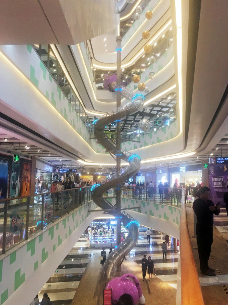 天虹购物中心的标志性欢乐项目——大滑梯,在鹰潭尚属排名前列,从5楼跨越到2楼的大滑梯,垂直落差13米,带给顾客极速滑行的酷爽体验: