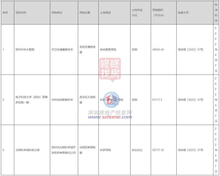 近日,深圳一批建设项目用地批准信息公开,包括深圳市华大医院、电子科技大学(深圳)高等研究院一期、光明科学城科旅之家3个项目用地。