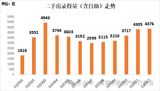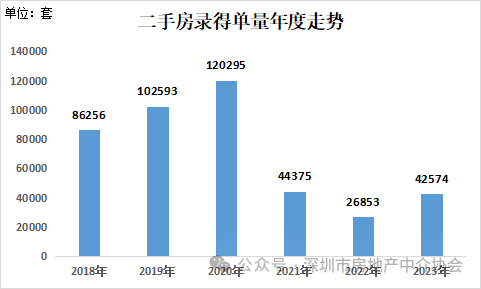 根据深房中协统计到的二手房录得量数据分析,2023年全年深圳二手房录得(含自助)42,574套,对比2022年26,853套的录得量,大幅增长58.5%,但相对于疫情前年均7万至8万套的水平,依然相差较大。