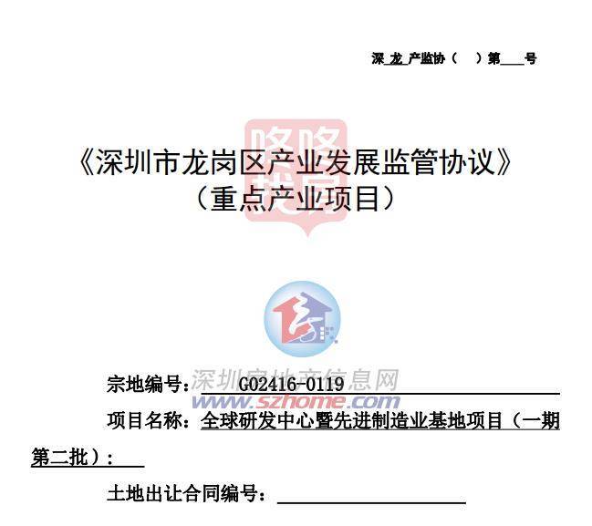根据产业监管协议显示,项目将建设全球研发中心暨先进制造业基地项目(一期第二批)。