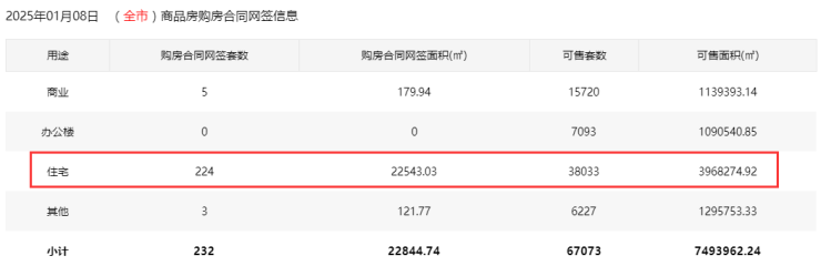 2025年1月8日新房购房合同网签224套。其中,宝安46套;福田4套;龙岗58套;罗湖7套;南山0套;盐田2套;龙华57套;坪山14套;光明33套;大鹏0套;深汕3套。