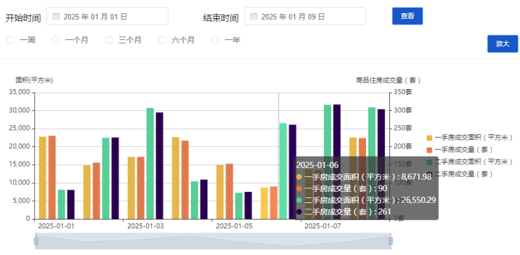 1月新房住宅购房合同网签累计1375套;二手住宅累计成交1665套。