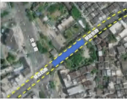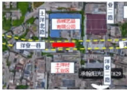 洋业横路现状路宽4.9m,规划道路宽 10m,为双向2车道,路中无绿化带。