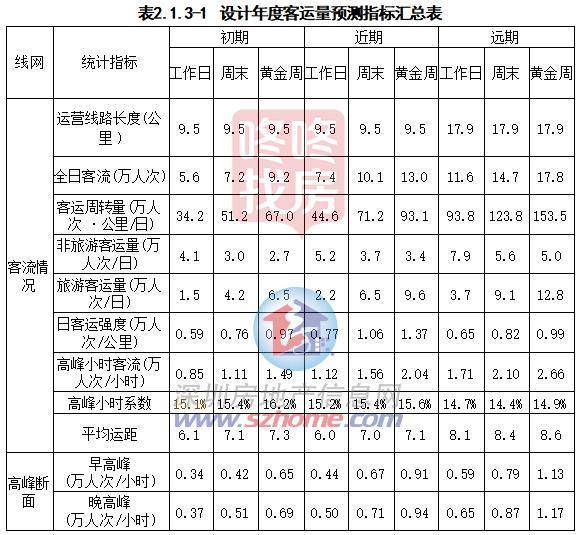 根据客流预测报告,研究年度客流预测指标汇总详见下表。