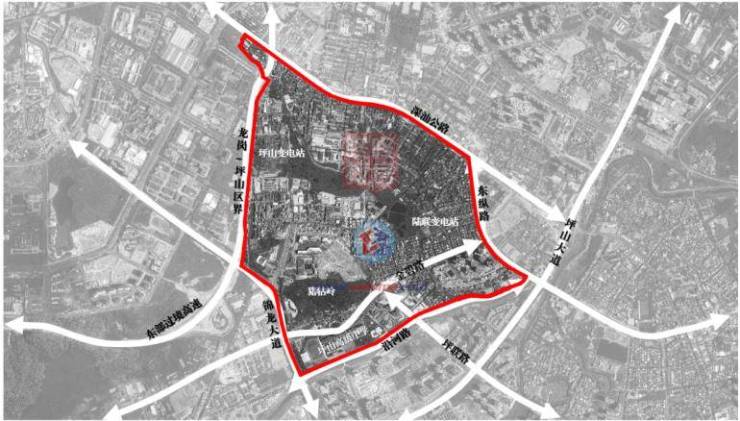 项目研究范围为丹梓大道、龙坪路、已批更新单元边界、深汕公路围合而成,用地面积约2.01平方公里。