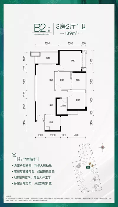 朝向东南或西北向,卧室看花园安静优于西北朝向单位。双面采光布局,客厅带有1.8米进深阳台,宽敞实用。主次卧开间进深比良好空间利用充分,居住空间分配均衡。餐厨空间紧凑实用入户自带玄关。