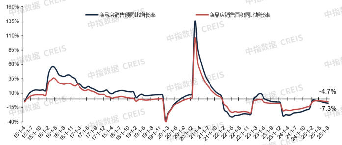 2025年1-8月全国新建商品房销售面积同比下降4.7%