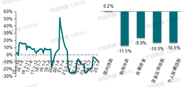 图:房企到位资金同比增速及各项资金来源同比增速对比