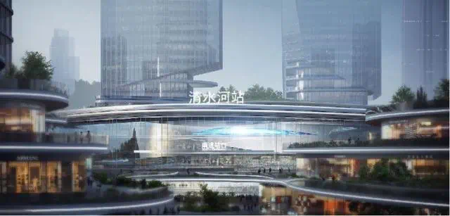 据悉,清水河枢纽提出了“清水绿谷、清水萍迹、站城融合”设计理念,以“浮萍”与“涟漪”紧密的形象,隐喻清水河站、城交织的亲密关系,将自然与水融入城市当中,形成“以地下枢纽为核心,山水相融,自然渗透生长”的超级枢纽城。
