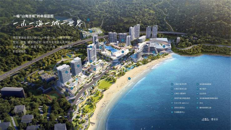 得天独厚的山海让小梅沙承载起几代深圳人的滨海梦想。在深圳加快“双区”建设、打造“全球海洋中心城市”和“世界级旅游目的地城市”的潮头之上,一个焕新、时尚、国际的小梅沙正以“一山、一海、一城、一世界”格局的面貌蝶变归来,将集合“主题乐园、生态公园、高端酒店、滨海商业、居住办公”等多场景、多层次业态集群,描绘都市山海生活的世界范本。