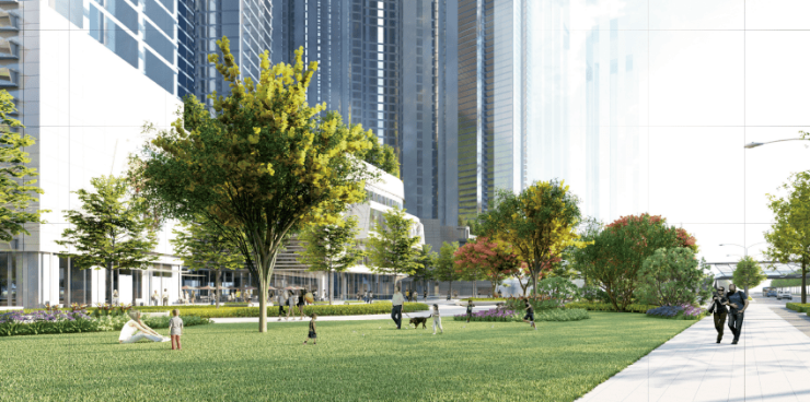 在设计方面,KK TIME注重商业与自然有机结合,以公园式商业为设计灵感,通过与空间、与户外的灵动关联,将现代建筑与生态景观广场融合,营造一个充满自然气息与生命活力的体验空间。