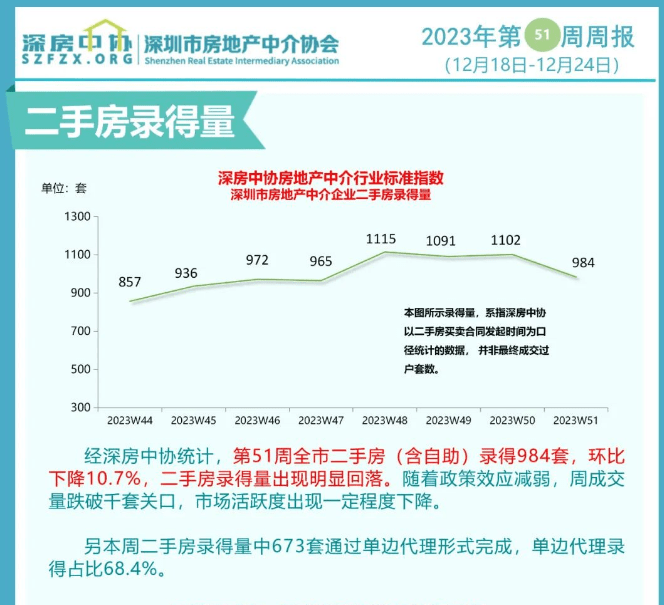 深圳市房地产中介协会发布第51周(12月18-24日)周报。