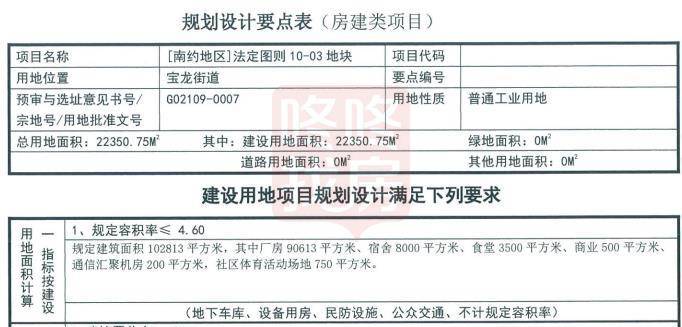宗地号G02109-0007宗地,土地位置龙岗区宝龙街道,土地用途普通工业用地,准入行业类别生物医药,土地面积为22350.75平方米,建筑面积为102813平方米,竞买保证金1455万元,土地使用年限为20年。