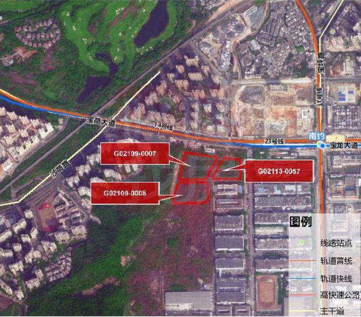 从深圳土地矿业权交易平台上给出公告显示,三宗地连在一起。
