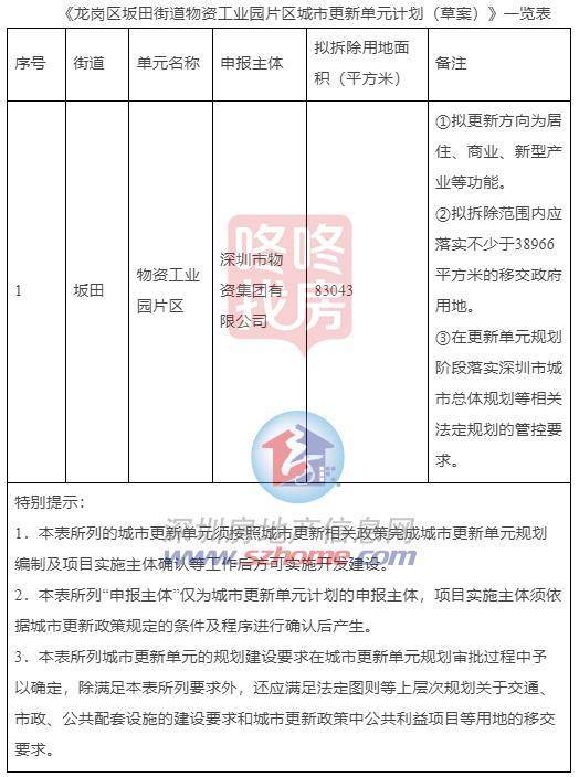 同天,《龙岗区坂田街道物资工业园片区城市更新单元计划(草案)》公示。