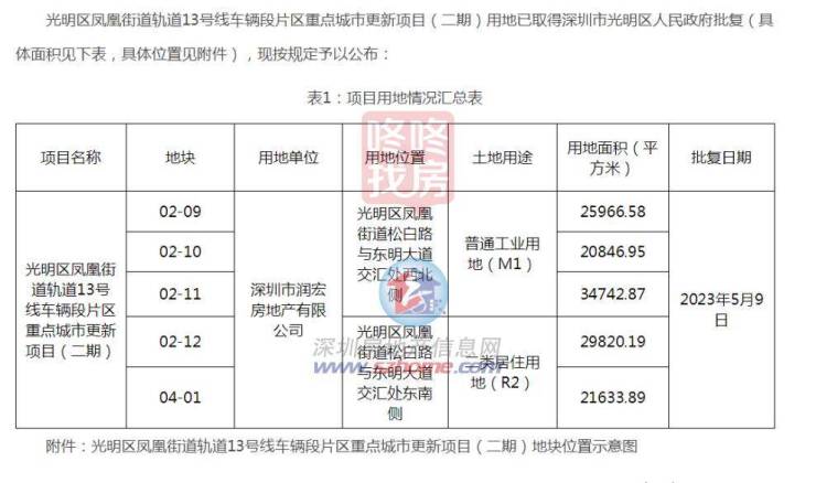 2023年5月,光明凤凰街道轨道13号线车辆段片区重点城市更新项目(二期)用地批复。