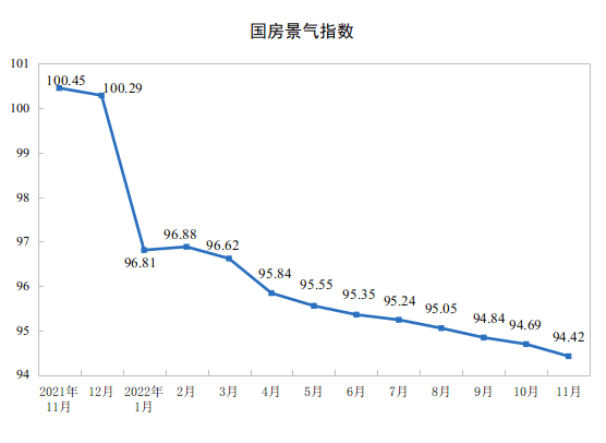 11月份,房地产开发景气指数(简称“国房景气指数”)为94.42。