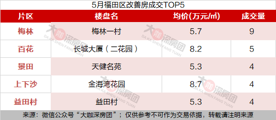 首先来看福田区5月成交TOP5的房源。