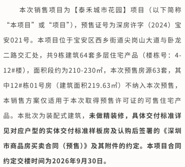 “目前没有样板房可以看,现在只能看展厅以及各类电子沙盘讲解,预计2026年9月毛坯交付。”深圳院子置业顾问向每经记者介绍。