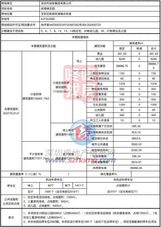 近日,深圳市规划和自然资源局宝安管理局公示阅海境花园(一期)《建设工程规划许可证》及总平面图。