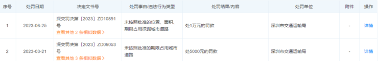 根据天眼查平台显示,深圳市桥头房地产开发有限公司有多条风险提示,其中自身风险中有2条行政处罚,共处罚1.5万。