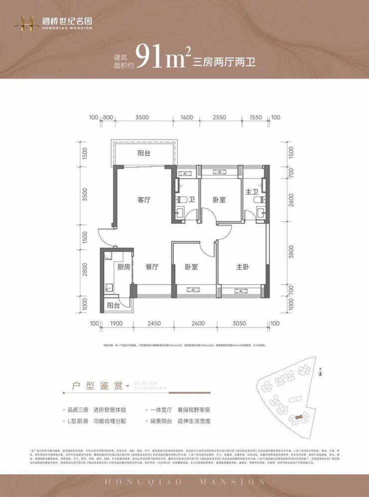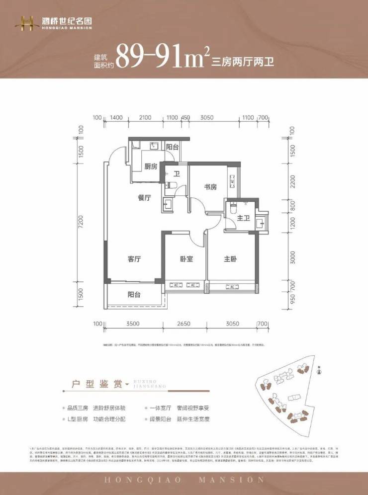 建面约89-91㎡的3房产品是主力户型。