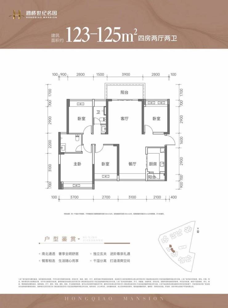 建面约123-125㎡的4房户型分布在B座;