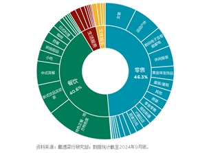 三季度,零售业态新开门店占比保持稳定于46.3%。Gentle Monster旗下全球第三家且目前面积最大的Haus Nowhere于万象天地开幕,独特的空间展示及多家设计师品牌首店成为近期市场热点。餐饮业态在本季新开门店的占比为40.6%,特色正餐占餐饮业态比重为37.2%,新式茶饮以17.0%的占比排在第二,不少品牌跟随开业项目持续填补市场空白。此外,也留意到细分小众赛道的趋势,如港式糖水、冰淇淋、舒芙蕾、贝果等餐饮业态在购物中心的开店数量有所增加。