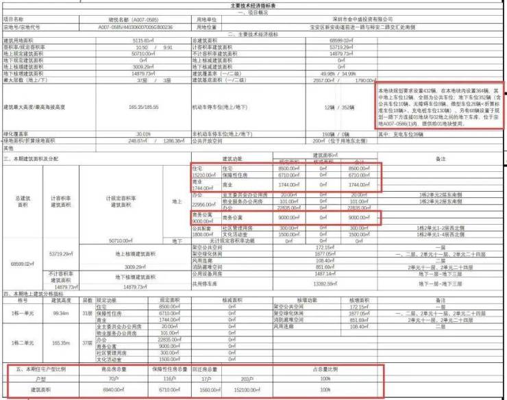 01地块(A007-0585宗地)总建面约6.9万㎡,含住宅建面约1.5万㎡、办公约2.3万㎡、商务公寓约0.9万㎡,容积率10.5。本地块规划住宅总户数约203户(包括商品住宅70户,保障性住房116户,回迁房房17户)。
