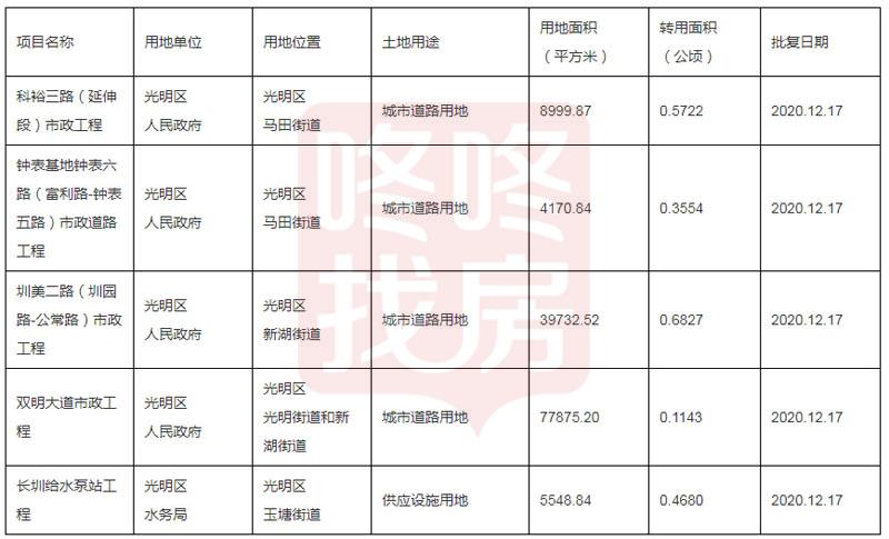 1月6日,深圳市规划和自然资源局光明管理局发布关于科裕三路(延伸段)市政工程等6个建设项目用地及农用地转用实施方案批复的通告,总用地面积约14.4万㎡。