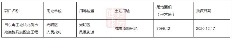 光明区2020年招拍挂出让用地产业地块十项目用地的农转用实施方案已获光明区人民政府批复,用地位置在光明区玉塘街道长圳社区,东长路和长凤路交会处西南侧,转用面积为0.4738公顷,土地用途为工矿仓储用地。