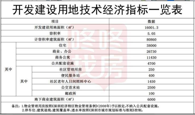 项目开发建设用地面积约1.6万㎡,计容积率建筑面积约8.1万㎡,容积率5.05,其中住宅38000㎡,商业、办公26730㎡,商务公寓11430㎡,公共配套设施共4700㎡。另外允许在开发建设用地内地下设置6000㎡的商业用房。