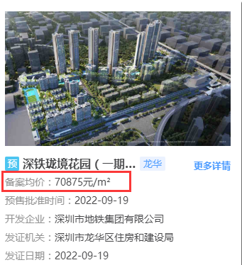 深铁珑境一期于2022年9月推出,主推户型为建面约110-185㎡的产品,备案价约7万/㎡。虽然深铁珑境的产品偏改善类的洋房产品,二期的超高层产品尚未推出,但这相差近1.5万/㎡左右的价差(折扣前,折后相差近2万/㎡),不由的让人感慨。