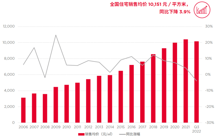 2022年1-9月,全国住宅新房成交均价10,151元/平方米,同比下降3.9%,虽然前9个月均价的同比降幅较前8个月收窄1个百分点,反映市场环境及预期稍有改善,但考虑到当前交易氛围不足以支撑价格上行,我们预计全年的住宅新房销售均价与上年相比大概率仍是负增长。