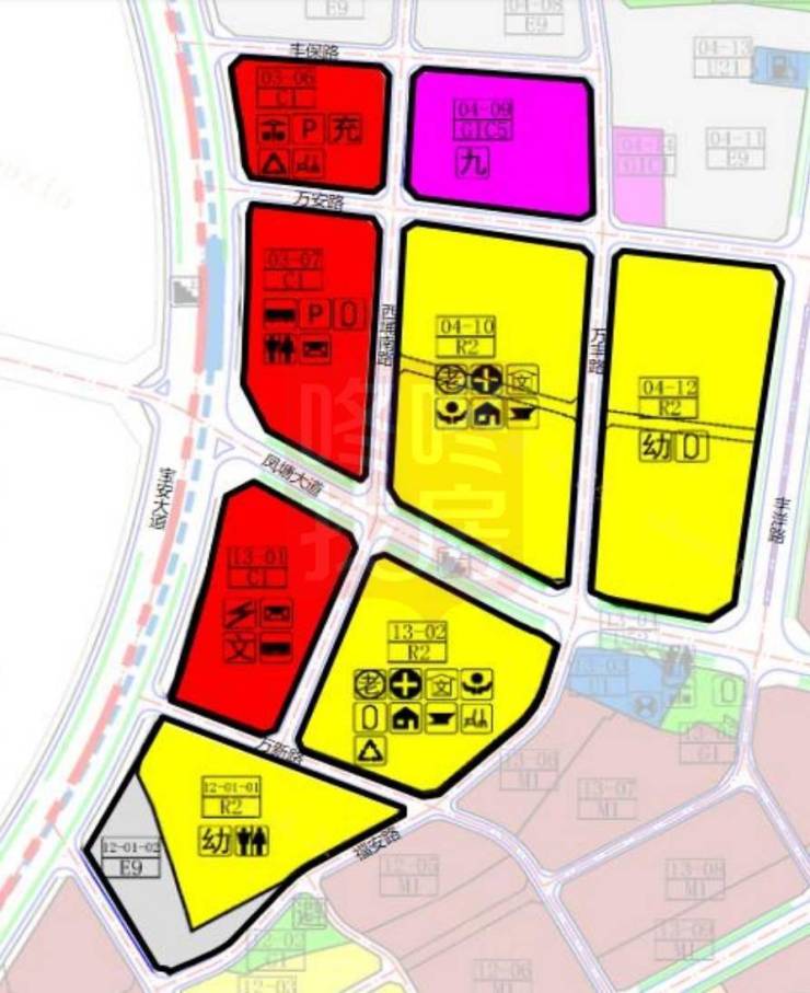 (六)12-01地块拆分为两个地块,其中,12-01-01地块面积36124平方米,规划用地性质为二类居住用地,容积率3.18,配套设施项目名称为12班幼儿园(独立占地3600平方米,建筑面积3960平方米)、公共厕所60平方米。12-01-02地块面积17413平方米,其余保持不变。