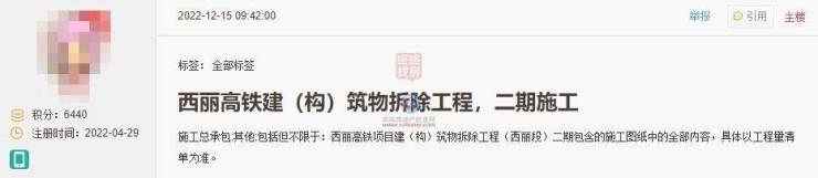 西丽高铁项目建(构)筑物拆除工程(西丽段)二期项目于12月15日公开招标。
