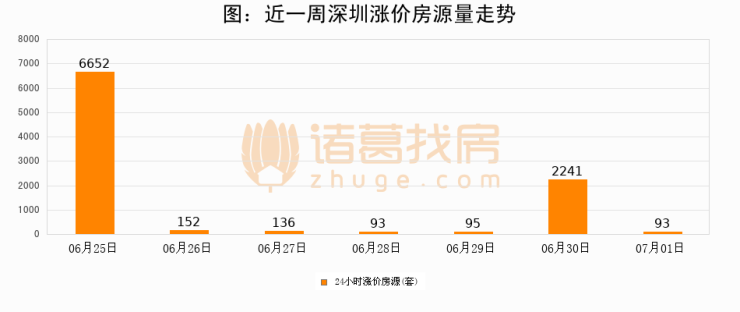 根据诸葛找房数据显示,深圳24小时涨价房源量为93套,较06月30日减少2148套,环比下降95.9%。与此同时,涨价房源占比小幅回落,对于购房者来说是一个入市窗口期,购房者可抓住时机入市。