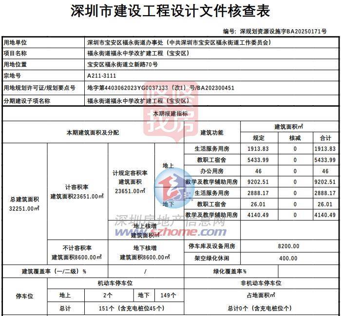 近日,福永中学改扩建工程项目《建设工程规划许可证》及总平面图公布。