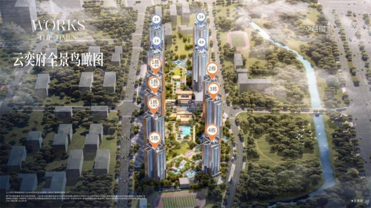项目共有5栋,其中4栋住宅,1-2栋31F,3-4栋32F,5栋幼儿园4F。