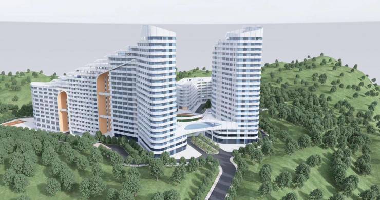 从项目鸟瞰图中可见,整个项目绿带包围、水系萦绕,各功能楼宇“镶嵌”在绿水青山之中,楼层之间的“空中花园”、爱心型的楼宇外形与周围自然环境交相辉映。