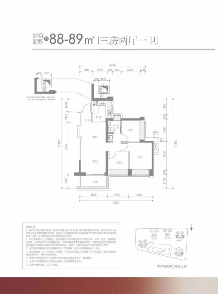 满京华金硕华府共由3栋5个单元的超高层住宅及1栋12班幼儿园组成,楼栋物理层高46-48层。现阶段户型面积段和楼栋分布已经流出,户型面积段有建面约88㎡、98㎡、103㎡、118㎡、141㎡五个户型,其中主力户型建面约98㎡为主。(具体以开发商最终公示为准)