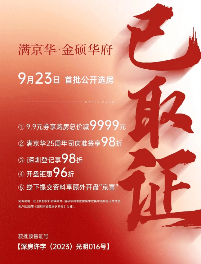 9月21日,位于光明科学城中心的满京华金硕华府登记人名册公示,此次共有572批客户入围,项目将于9月23日开盘。