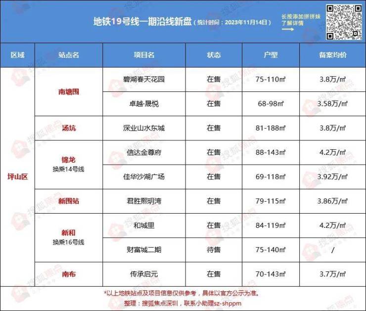 从板块区域来看,目前锦龙站、新和站周边是坪山的核心区域,居住环境配套及城市面貌已经完善,房价也相对略高。其中,卓越晟悦新入市不久可选性比较充足,信达金尊府、和城里已经是尾盘在售,可选性不多;财富城二期还在前期施工中,预计今年年底或2024年上半年入市。